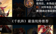 千机阵最强统帅是什么?有不少的小伙伴都想要知道在千机阵游戏中最强的统帅是谁,所以今天小编就为大家带来了千机阵最强统帅推荐,那有需要的小伙伴快来小编这里看看吧。《千机阵》最强统帅推荐