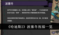 哈迪斯2波塞冬祝福有哪些?哈迪斯2波塞冬的祝福都是偏向水属性的,以高额的aoe伤害为中心,另外还可以提升玩家本身的生命上限,波塞冬的祝福效果在下面都给大家列出来,让大家能更清楚了解