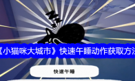 小猫咪大城市游戏中大家除了做任务收集成就之外, 大家还有一些动作需要收集!其中快速午睡动作怎么获得呢?这个动作获取需要先和白猫对话!下面是3DM小编给大家带来的《小猫咪大城市》快速