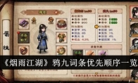 烟雨江湖鸦九词条优先顺序是什么?玩家在烟雨江湖中进行游戏时可以获得鸦九,玩家可以通过词条提升鸦九的属性,有很多玩家不知道鸦九词条优先顺序,推荐玩家优先打出四个吸血,有需要的小伙伴快