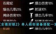 全境封锁2单人刷街装备怎么搭配?全境封锁2里面很多人都想要去进行单人刷街了呢,那么就需要准备一下这个装备搭配了呢,可以去刷四级点了,需要知道下具体的搭配然后自己考虑用不用了,那么要