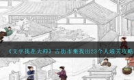 文字找茬大师是某音上非常热门文字解谜类闯关游戏,其中关卡古街市集找出23个人怎么过?这一关我们需要在黑白线条画中找出23个人。下面是3DM小编给大家带来的《文字找茬大师》古街市集找