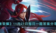 王者荣耀游戏中11月21日每日一题答案是什么,相信还有很多游戏玩家不清楚具体答案是什么,下面小编给大家分享一下微信公众号11月21日每日一题答案,有需要的小伙伴一起来看看吧,希望能