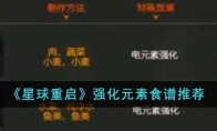星球重启强化元素食谱有哪些?星球重启里面很多人都想要去强化一下我们的火元素还有电元素的呢,那么就可以去做一些可以强化的元素食谱了呢,今天就给大家推荐几个好做的,需要我们去收集食材了