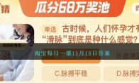 古时候,人们怀孕才有的“滑脉”到底是种什么感觉?这是2023年淘宝大赢家11月15日活动题目,进入到淘宝首页二楼找到大赢家进入可参与答题,回答正确后第二天登录就能领取到免费的红包奖