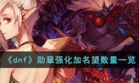 dnf中勋章可以进行强化,玩家通过强化可以获得固定的名望值,那么勋章强化能够加多少名望呢?下面小编给大家带来了勋章强化加名望数量一览,有兴趣的小伙伴一起来看看吧,希望能够有所帮助。