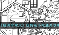 脑洞非常大是一款趣味闯关小游戏,有各种各样的谜题要解决,游戏里每个关卡都十分好玩有趣,今天小编就给大家带来了游戏中找传统小吃的通关攻略,有兴趣的小伙伴快来看看吧,希望能够有所帮助。
