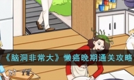 脑洞非常大是一款趣味闯关小游戏,有各种各样的谜题要解决,游戏里每个关卡都十分好玩有趣,今天小编就给大家带来了游戏中懒癌晚期的通关攻略,有兴趣的小伙伴快来看看吧,希望能够有所帮助。