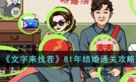文字来找茬是一款休闲文字类的益智闯关小游戏,玩家可以在游戏当中进行各种闯关解谜的操作,今天小编给大家带来了游戏中81年结婚的通关攻略,有兴趣的小伙伴一起来看看吧。 文字来找茬81年