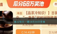 2023年10月24日淘宝大赢家每日一猜题目是:古装剧中一盏茶的时间到底是多久?正确答案是:C.14.4分钟。今天题目答案大家进入【进来找线索】,然后在小剧场中可以找到答案!一盏茶