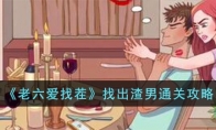 老六爱找茬是一款独特的找茬类型手游,游戏画风可爱而且还有很多玩法模式,游戏中也有很多好玩有趣的关卡,今天小编就给大家带来了游戏中找出渣男的通关攻略,有兴趣的小伙伴一起来看看吧,希望