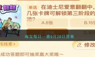 在迪士尼爱意翻翻中,集齐几张卡牌可解锁第三阶段的奖池?这是2023年淘宝大赢家9月20日活动题目,参与淘宝大赢家活动进行答题,回答正确后第二天登录就能领取到免费的红包奖励,小编给大