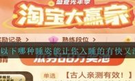 [古人亲测有效! ]以下哪种睡姿能让你入睡的有快又深??这是2023年淘宝大赢家9月18日活动题目,参与淘宝大赢家活动进行答题,回答正确后第二天登录就能领取到免费的红包奖励,小编给