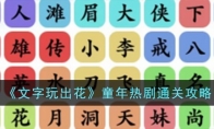 文字玩出花是一款休闲闯关类小游戏,游戏设有非常多好玩有趣的关卡。今天小编就给大家分享一下游戏中童年热剧的通关攻略,相信还有一些玩家不清楚怎么玩,有需要的小伙伴一起来看看吧,希望能够