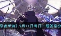 火影忍者手游中9月11日每日一题答案是什么,相信还有很多游戏玩家不清楚具体答案是什么,下面小编给大家分享一下游戏微信公众号中9月11日每日一题答案,有需要的小伙伴一起来看看吧,希望