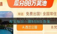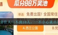 免费出国!全国常住人口不到10人,一不小心就出国的是?这是2023年淘宝大赢家9月8日活动题目,参与淘宝大赢家活动进行答题,回答正确后第二天登录就能领取到免费的红包奖励,小编给大家