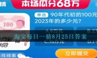 90年代初的100元约等于2023年多少元?这是2023年淘宝大赢家8月25日活动题目,参与淘宝大赢家活动进行答题,回答正确后第二天登录就能领取到免费的红包奖励,小编给大家带来了8