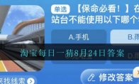 在高铁站台不能使用以下哪个物品?这是2023年淘宝大赢家8月24日活动题目,参与淘宝大赢家活动进行答题,回答正确后第二天登录就能领取到免费的红包奖励,小编给大家带来了8月24日淘宝