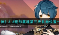 原神3.8版上线,小伙伴们对此次更新更多的是关心UP卡池吧,那么3.8版本会有哪些角色和新内容呢?今天小编为大家带来一期原神3.8琉形蜃境第三天礼券位置一览,感兴趣的小伙伴一起来看