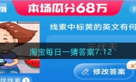 线索中标黄的英文有何含义?这是2023年淘宝大赢家7月12日活动题目,参与淘宝大赢家活动进行答题,回答正确后就能领取到免费的红包奖励,小编给大家带来了淘宝大赢家今日答案7月12日是