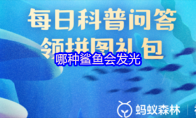 支付宝蚂蚁森林神奇海洋2025年6月4日问题已经更新,今日题目是:哪种鲨鱼会发光?正确答案是:【灯笼鲨】。灯笼鲨的皮肤含有发光细胞,遇到危险时,身体会根据接收到的环境光来发光,使自