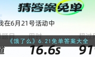 饿了么免单活动再度来袭,通过猜答案免单,回答正确后就有机会获得免单奖励啦!下面小编为大家带来了饿了么免单6.21答案,饿了么6月21日猜答案免单答案题库大全,感兴趣的小伙伴们快跟小