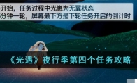 光遇夜行季开放了第四个任务,玩家需要在任务地点进行打坐触发任务后才能完成,下面小编给大家分享一下夜行季第四个任务的通关攻略,有兴趣的小伙伴一起来看看吧,希望能够有所帮助。 光遇夜行