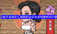 在差不多高手中女长官是稀有品质辅助伙伴之一,女长官可以极大的增加其他伙伴的攻击力,建议大侠培养使用。下面给大家带来了《差不多高手》辅助职业女长官技能特点分享!>>>