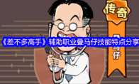 在差不多高手中叠马仔是传奇品质辅助伙伴之一,叠马仔的技能和玫瑰一样,都是对老屋进行加成,但是和玫瑰不同的是,叠马仔主要是给老屋回血和分摊攻击。下面给大家带来了《差不多高手》辅助职业