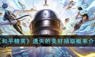 《和平精英》遗失的美好抽取概率介绍和平精英遗失的美好抽取概率是多少?遗失的美好是《和平精英》游戏最新上线的抽奖活动,很多玩家想要了解抽奖的掉落概率,那么下面小编就给大家带来了和平精英遗失的美好抽取概率介绍,对此感兴 2023-01-10 14:01:28 3444