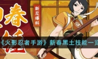 《火影忍者手游》新春黑土技能一览火影忍者手游新春黑土技能是什么?新春黑土是《火影忍者手游》在2023年春节版本中即将上线全新的春节限定角色,相信很多小伙伴都已经迫不及待想知道新春黑土新角色强度如何以及技能是什么, 2023-01-09 13:24:50 4061