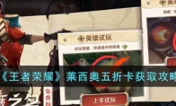 王者荣耀莱西奥五折卡怎么获得?《王者荣耀》最近上线了新英雄莱西奥,想要免费获得该英雄可以直接使用两张5折卡即可获得,很多小伙伴都不知道怎么获得两张5折卡,下面小编给大家带来了王者荣
