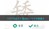 汉字找茬王游戏是抖音上热火的文字闯关游戏,其中关卡矮找出15个字怎么过?这一关答案是矮、矢、天、大、委、禾、女、木、十、人、千、夭、壬、土、二、一、少。下面是3DM小编给大家带来的