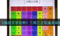 我的文字世界是最近抖音热门文字游戏,游戏中三两三之歌怎么过关?这是游戏最新关卡之一,三两三之歌是抖音上非常火的一首歌,现在游戏中也出现了。下面是3DM小编给大家带来的《我的文字世界