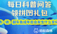 猜一猜:翻车鱼成年后会发生什么变化?【神奇海洋】10月11日新题目已开答!正确答案现已公布,点击领取拼图,一起为修复海洋生态贡献力量!今日正确答案是:【尾鳍退化】,翻车鱼成年后尾鳍