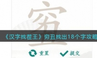《汉字找茬王》穷丑找出18个字怎么过关?这一关的穷丑最后找出的18个字是:穷、丑、八、穴、王、土、干、力、刀、千、一、二、三、十、分、工、空、壬。下面是3DM小编给大家带来的抖音小