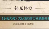 《永劫无间》是一款由网易打造的无动作RPG手游,游戏中浓厚的国风元素加入,为玩家呈现心中理想武侠之梦,游戏中最近的活动可以兑换沈妙,但是玩家需要用体力探索,导致了很多玩家体力不够,