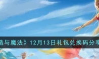 创造与魔法12月13日礼包兑换码是什么?在《创造与魔法》游戏中玩家们可以使用官方发放的礼包兑换码来兑换一些日常福利,很多小伙伴还不清楚12月13日的创造与魔法游戏的兑换码,以下是小
