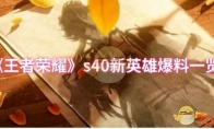 在王者荣耀中s40赛季即将到来,但是由于还有很多的玩家们不知道新英雄是谁,那么所以今天小编就给大家带来详细的王者荣耀s40新英雄爆料,感兴趣的小伙伴可千万不要错过本篇文章。希望能够