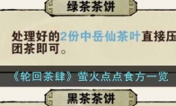 轮回茶肆萤火点点食方有哪些?《轮回茶肆》是一款古风模拟经营类手游,在游戏中玩家头衔达到萤火点点后,能获得更多的食方,下面小编就为大家分享这些食方的具体组合是什么,感兴趣的小伙伴不能
