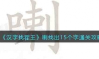 抖音热火文字游戏《汉字找茬王》关卡喇找出15个字怎么过?这一关要求是找出常见字,喇字由三部分组成,分别是口、束和立刀旁,下面是3DM小编给大家带来的抖音小游戏《汉字找茬王》喇找出1