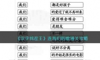 《汉字找茬王》是抖音上目前很火的精彩益智烧脑解谜闯关游戏,游戏中连我们的歌怎么过关?这一关是连线我们开头的歌,右边大多数都是比较熟悉的歌曲。下面是3DM小编给大家带来的抖音小游戏《