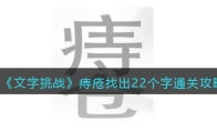 文字挑战游戏在抖音上很多人在玩,游戏围绕着汉字来进行,包括找茬,填字,策略,逃脱等等游戏类型。其中痔疮找出22个字怎么过?找字第一关需要我们从痔疮两字里面找到22个汉字,由于字的笔
