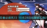 《忍者必须死3》2022年10月28日兑换码是:小椒的百草园之旅。忍者必须死3是一款非常火爆的忍者横版动作手游巨作,极致精美的画面制作,细腻的场景刻画,将横版跑酷和忍者冒险完美融于