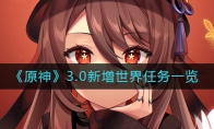 《原神》游戏中3.0版本已经更新了,于此同时新增加了很多的世界任务,玩家们通关完成世界任务之后能够获取大量的奖励以及道具,那么今天小编就给大家介绍一下原神3.0新增世界任务一览,有