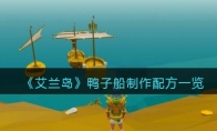 《艾兰岛》鸭子船配方:木板×30+钉子×20+布×5+原木×2+任意锤子×1。随着各位岛主解锁的内容越来越多,后期会开始着手制作大型船舶,相较于其他小船而言,空间和动力再次进一步提