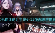 《无期迷途》游戏中主线6-12关卡难度比较高,推荐搭配角色40级的2阶角色,德莫莉,德莫莉,玛奇朵以及艾米潘等,那么今天小编就给大家介绍一下无期迷途主线6-12低配阵容推荐,有需要