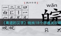 离谱的汉字是抖音里面一款以文字为主题的闯关游戏,游戏中皖找18个字怎么过?这是一个拆文解字关卡,需要将【皖】字拆出18个字过关。下面是3DM小编给大家带来的抖音《离谱的汉字》皖找1