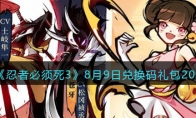 《忍者必须死3》2022年8月9日兑换码是:17737d1527。忍者必须死3是一款非常火爆的忍者横版动作手游巨作,游戏上线以来官方、B站、公众号等不定时会有各种礼包发放,今日礼包