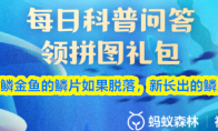 珍珠鳞金鱼的鳞片如果脱落,新长出的鳞片会?【神奇海洋】11月5日新题目已开答!正确答案现已公布,点击领取拼图,一起为修复海洋生态贡献力量!今日正确答案是:【变成正常鱼鳞】。珍珠鳞金
